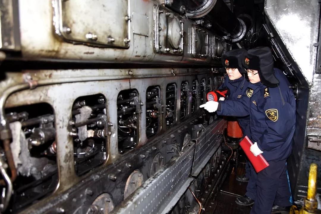 海關(guān)工作人員正對中歐班列牽引機(jī)車(俗稱機(jī)頭)進(jìn)行登臨檢查